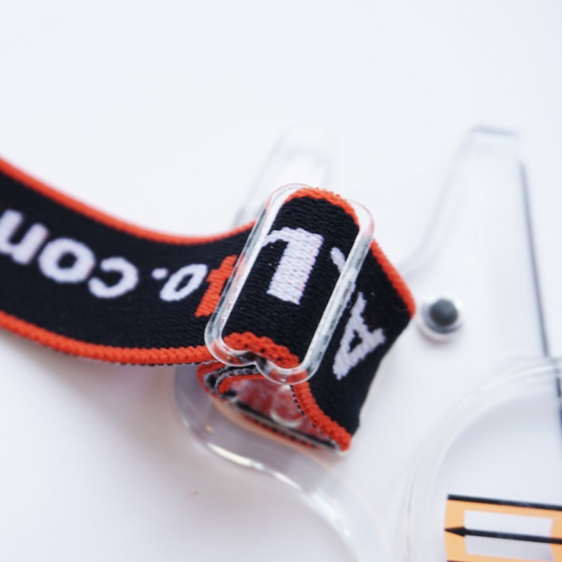Elastic band for orienteering compass with ALL4o logo.