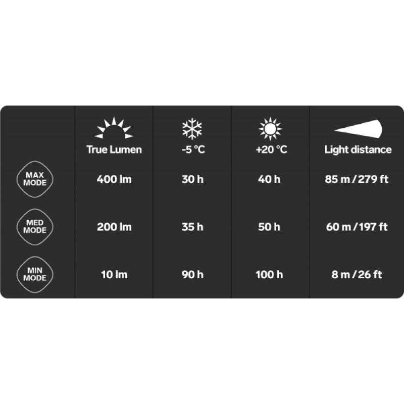 Explore 4 is a waterproof headlamp, with a very generous burn time and multi attachment options. It has got three led colours; a 400 lm white one, a red one that preserves your night vision and an orange one that is optimal for map reading. You can even use it to light up your tent or boat, by placing it inside the included storage bag. If you are the kind of person who loves adventures – wether it is on land or water, calm hiking and sailing trips or exciting mountaineering and kayaking – this lamp will guide you anywhere you want to go. With an improved super low mode (10 lumen) you can get an even longer burn time for close range work or reading.
