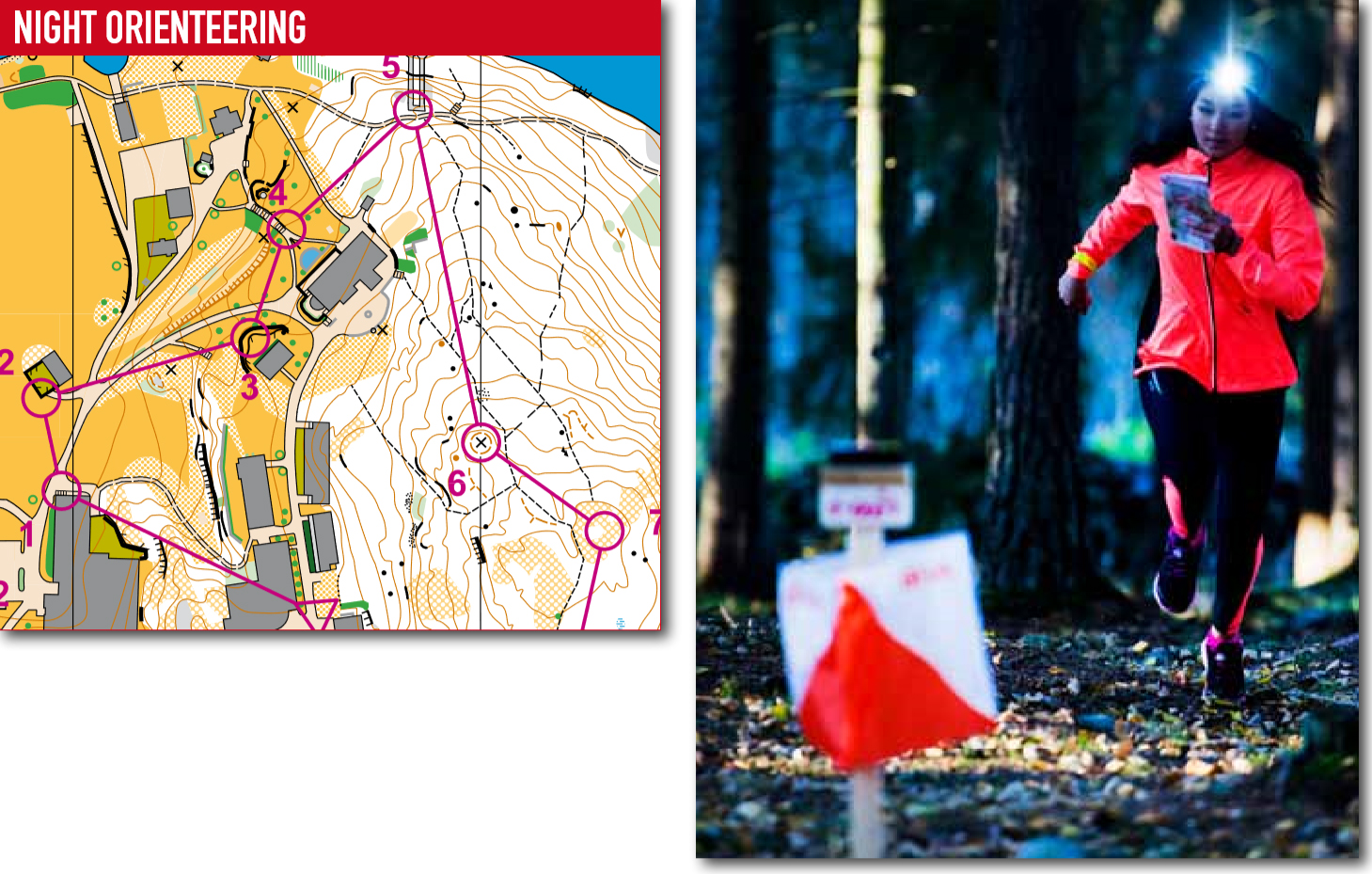 A challenging adventure in the dark. An easy course along a handrail with checkpoints on or close to the handrail. Suitable to implement in connection with overnight activities. All participating pairs need to have flashlights or headlamps. Reflective controls.