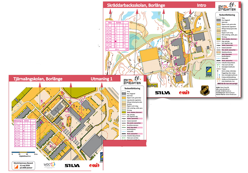 Students at middle school and those at primary school with a bit more experience of orienteering can then run a more complex course, ”Challenge 1” or/and ”Challenge 2”.
