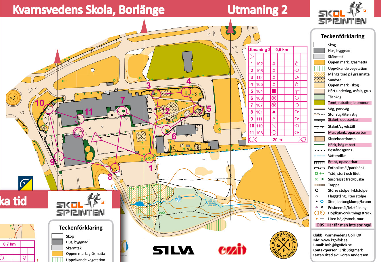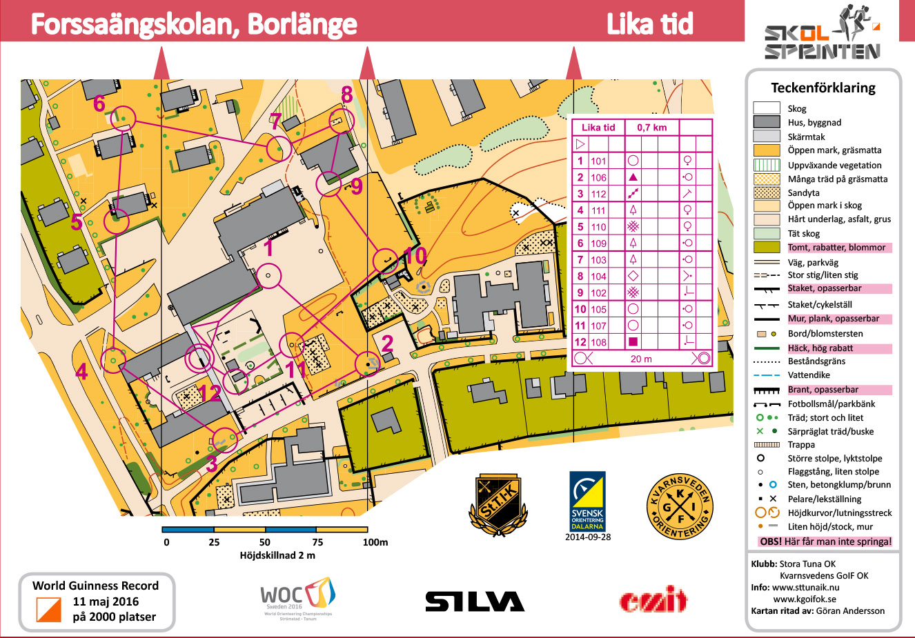 After school, during volunteer time, we put on a ”competition” in orienteering. The difficulty level is equivalent to ”Challenge 1-2” and the participants can walk, jog or run the course. The students perform the course at least twice. The time of the first lap the students have to ”dot” on the next lap. They are free to try as many times as they want. The student who comes closest to her/his first time i.e. ”equal time” is the winner of the competition.