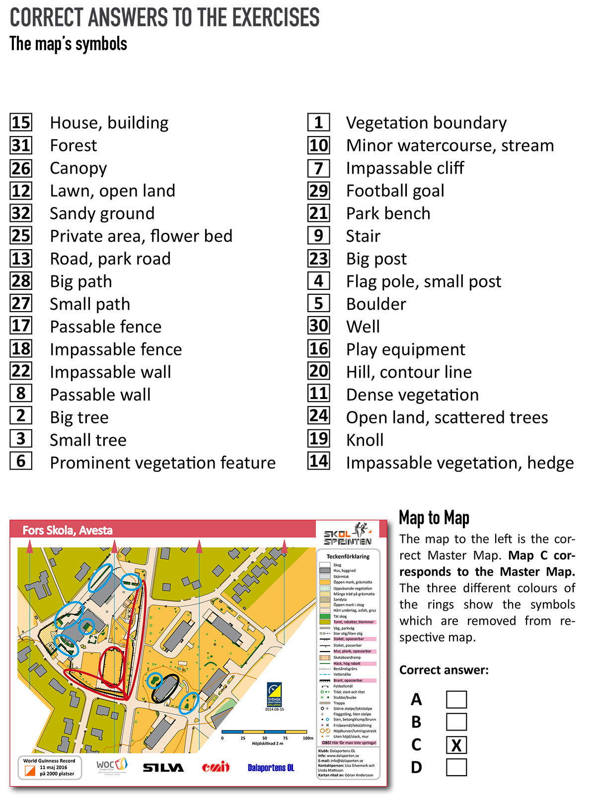 Orienteering at school for ages 6-12: CORRECT ANSWERS TO THE EXERCISES