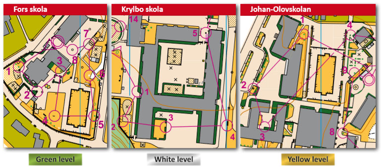 THE YELLOW LEVEL is designed for teaching in secondary schools but parts of this level can be used at the end of middle school too. In particular, by using a small forest area nearby with some hills. An area where the kids normally play. Students get an understanding of what goes up and down on the map. The area is both known and safe for children.