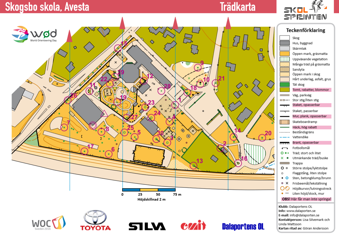 • Sweden has about 25 different kinds of trees. What trees grow on your schoolyard? Visit all 30 controls and check!