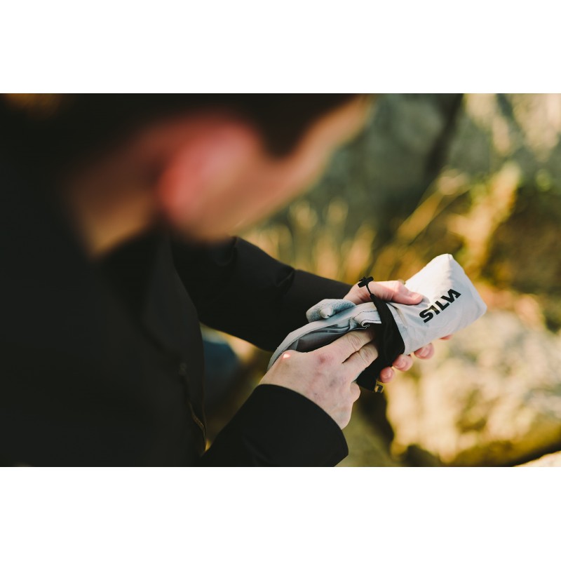This backpack is so light, so small, so smart and oh so easy to always carry with you. With its 15/23-liter pack size, it holds your water bottle, your lunch or dinner, an extra down jacket and gloves, a map, compass and even a small sleeping bag. And yes, it’s waterproof. This is an improvement of an existing product. We have used more lightweight material, optimized the shape for packing volume and fit, and added two side pockets for easy access. Just like the other SILVA Waterproof Dry Bags it’s easy to stuff and close with the “roll and close” system. When not in use, store it in the small bag that is attached to it and it takes up minimum space.